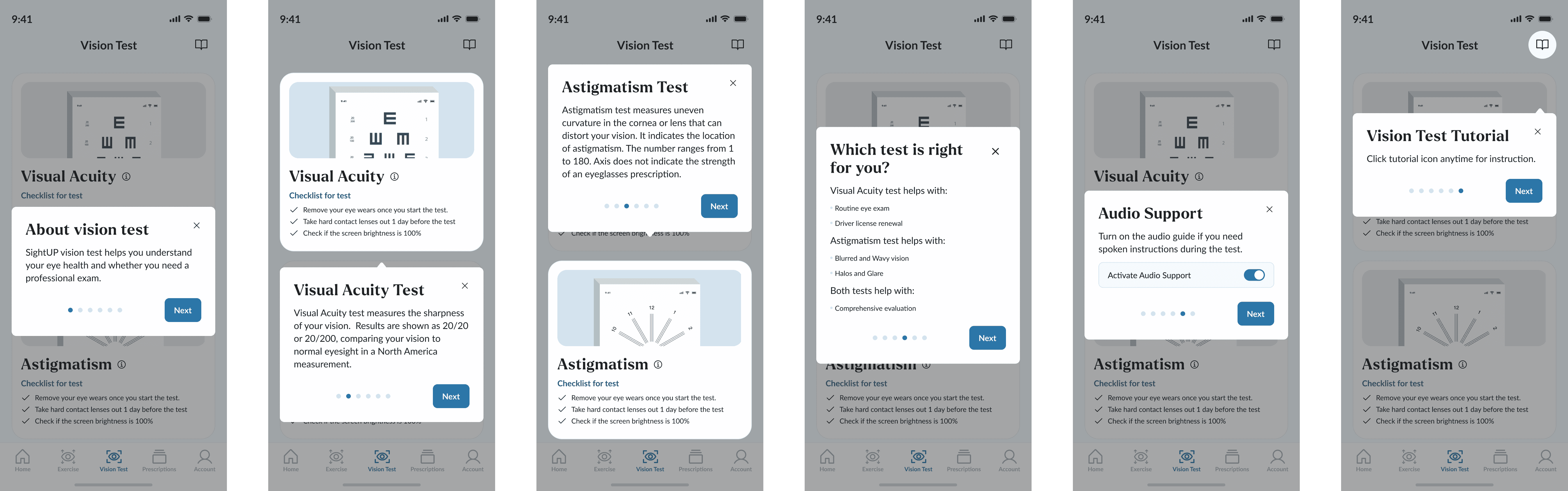 Experience how the prototype guides users through vision tests from start to finish.